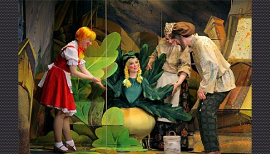 Первой книгой для чтения большинства россиян была именно сказка про репку. Казалось бы, ее сюжет настолько тривиален, что ничего нового в нем придумать нельзя. Однако пример Московского государственного театра Геннадия Чихачева показывает, что даже самая знаменитая история может приобрести свежие черты, если за ее постановку возьмется опытный состав постановщиков и артистов.