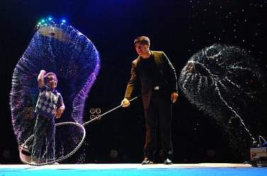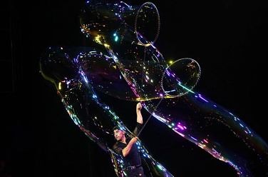 Огромный концертный зал в этот вечер затопит море эмоций и блики радужного света от сотен мыльных пузырей. Различных размеров и форм. Волшебник обещает создать «бриллиантовый пузырь», «пузырь-медузу», гигантский пузырь «Галактику» и продемонстрирует множество других невероятных трюков. А, возможно, попробует побить в Москве тот самый рекорд, когда он умудрился обтянуть переливающейся мыльной плёнкой 181-го человека, разлив предварительно вокруг них две тысячи литров специального раствора. Разумеется, что Фан Янг и его дочка ассистентка Мелоди держат его состав в строжайшей тайне.